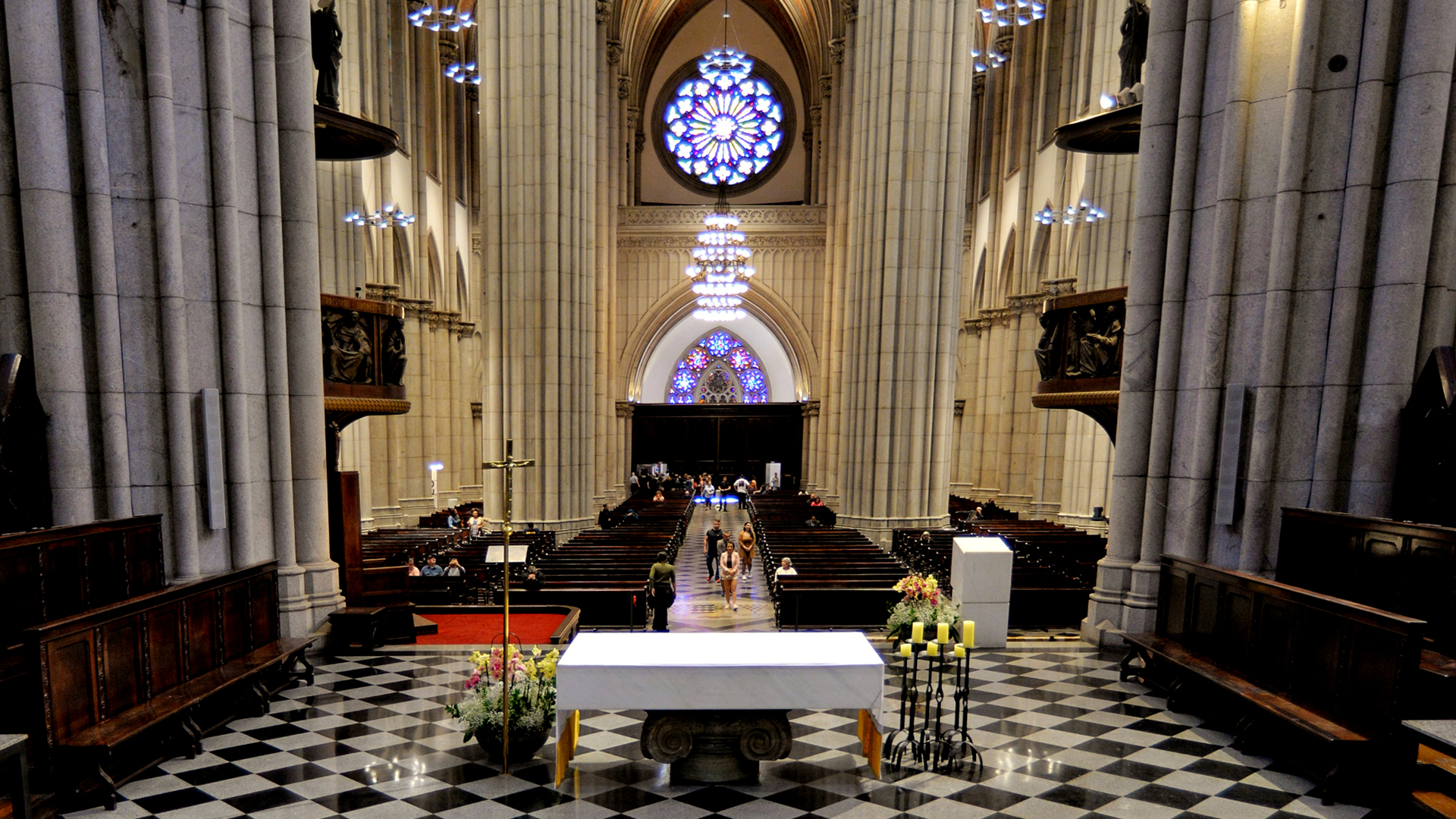 A grandiosidade da Catedral da Sé vai além de sua arquitetura impressionante. Seu interior abriga um tesouro de obras de arte sacra, vitrais magníficos e mosaicos, importados da Itália, demonstrando a maestria artística dedicada à sua construção.
