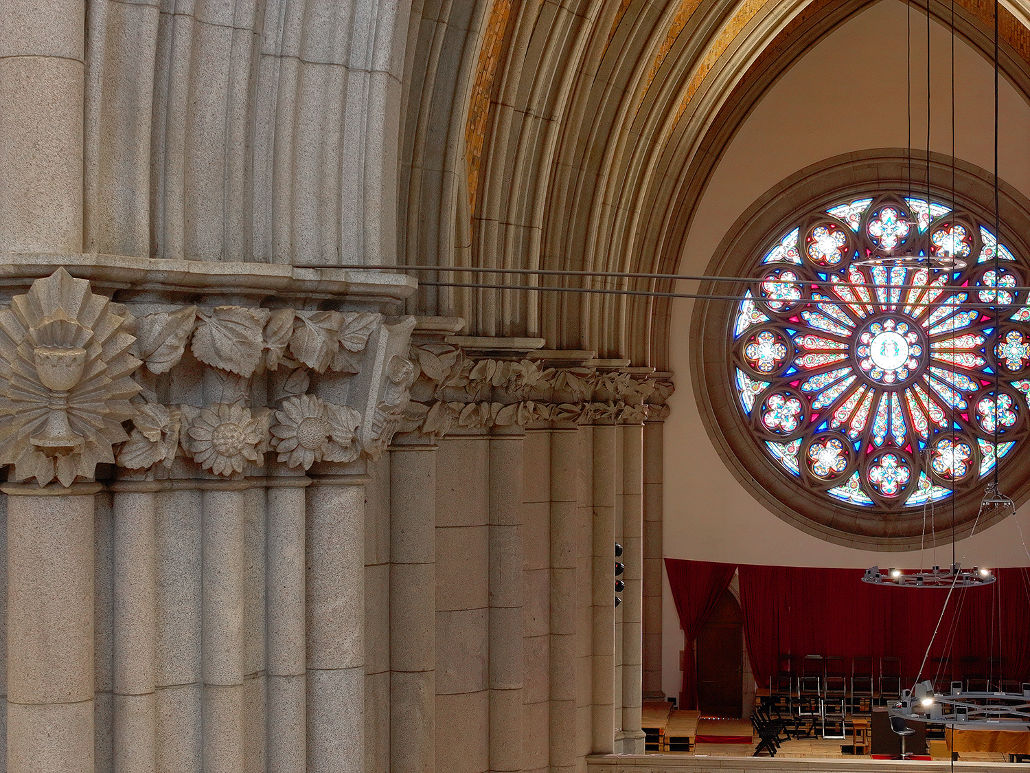 A atenção meticulosa aos detalhes é evidente nos ornamentos internos, capitéis das colunas e elementos esculturais, representando o “gótico à brasileira”. Altos-relevos, estátuas e elementos ornamentais destacam-se por sua representação da flora e fauna brasileiras.