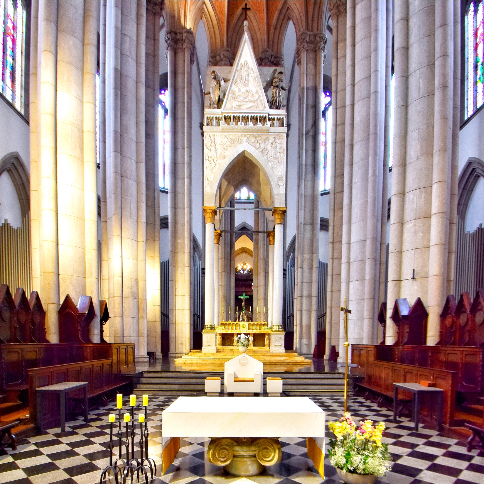 Cada imagem presente em seus espaços internos e externos foi concebida para conduzir o olhar à contemplação, transformando pedra, cor e luz em expressão do sagrado. A arquitetura e a arte sacra dialogam de forma harmônica, criando uma atmosfera que convida ao silêncio, à reflexão e à espiritualidade, mesmo em meio ao ritmo intenso do centro de São Paulo.